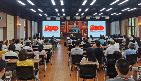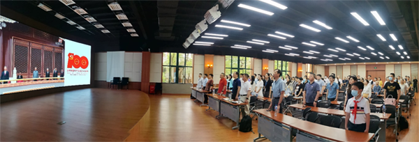 2021年7月1日上午8時,慶祝中國共產(chǎn)黨成立100周年大會在北京天安門廣場隆重舉行。中國科學(xué)院上海營養(yǎng)與健康研究所黨委組織100余名黨員在信息中心明德廳集中收看,奮戰(zhàn)在科研、管理、支撐等條線,暫時不能離崗的黨員群眾自發(fā)在工作崗位上收看、收聽網(wǎng)絡(luò)直播。