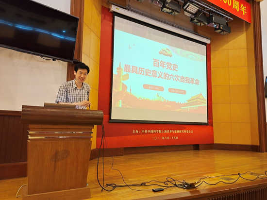 隨后,黨支部書記應浩研究員作了題為《百年黨史——最具歷史意義的六次自我革命》的黨課,分別從“打鐵必須自身硬是馬克思主義政黨的內生特質”、“百年黨史,最具歷史意義的六次自我革命”、“刀刃向內的自我革命永遠在路上”等三個方面做了領學。通過對歷史事件的分析,他闡明了自我革命是共產主義事業的生命力所在,是共產黨人與生俱來的優良政治品質,同時強調中國共產黨之所以能夠歷經滄桑,仍然屹立于世界政黨之林,與其具有的鮮明自我革命精神是密不可分的。