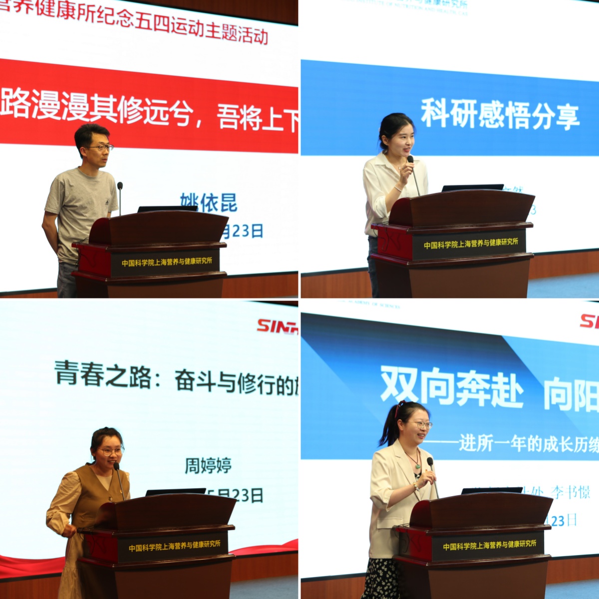 系統(tǒng)免疫學(xué)研究組組長姚依昆研究員結(jié)合求學(xué)及科研經(jīng)歷,分享了自身的奮斗歷程及感悟,從科研源泉、科研保障、科研基石、科研靈魂、科研動(dòng)力等多個(gè)角度為科研青年們的成長帶來啟發(fā)。2023年度上海市巾幗建功標(biāo)兵和巾幗創(chuàng)新未來之星獲得者、人類表型組學(xué)研究組博士后李文然分享了她在科研創(chuàng)新中的小故事和以小見大的感悟,將她勇于抓住機(jī)會(huì)、克服挑戰(zhàn)收獲成長的歷程娓娓道來。上海分院“中銀·科苑優(yōu)秀學(xué)子”獲得者、多能干細(xì)胞與肝臟疾病研究組研究生周婷婷講述了自身從入所求學(xué)到博士后十年間的科研青春之路,并就研究生普遍關(guān)心的實(shí)驗(yàn)等科研問題提出了真摯建議。監(jiān)督審計(jì)處李書憬分享了進(jìn)所一年及前往北京借調(diào)適應(yīng)新變化、迎接新挑戰(zhàn)、戰(zhàn)勝新困難的成長歷練,以及青年人如何立足本職擔(dān)當(dāng)責(zé)任、主動(dòng)向前的心得感悟。