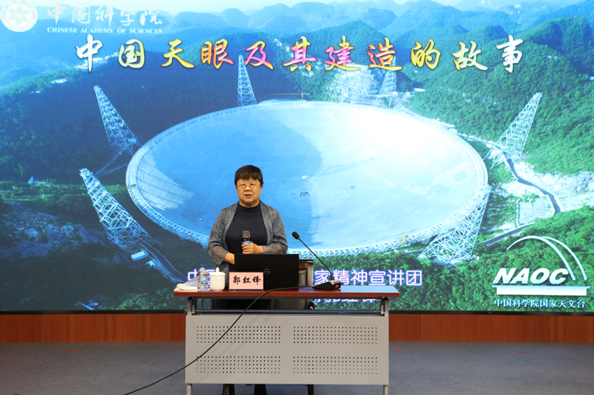 中國科學(xué)院科學(xué)家精神宣講團(tuán)成員高級(jí)工程師郭紅鋒受邀作《中國“天眼之父”南仁東的故事》專題報(bào)告。她聲情并茂地講述了南仁東先生傾其一生投入“中國天眼”建設(shè)的故事以及22年建設(shè)歷程中的典型事例,激勵(lì)青年用五四精神之火淬煉自己,傳承科學(xué)家精神,以干事創(chuàng)業(yè)的熱情和砥礪奮進(jìn)的信心,在各種重大科技攻關(guān)任務(wù)中擔(dān)重任、挑大梁,書寫出亮眼的青春答卷。