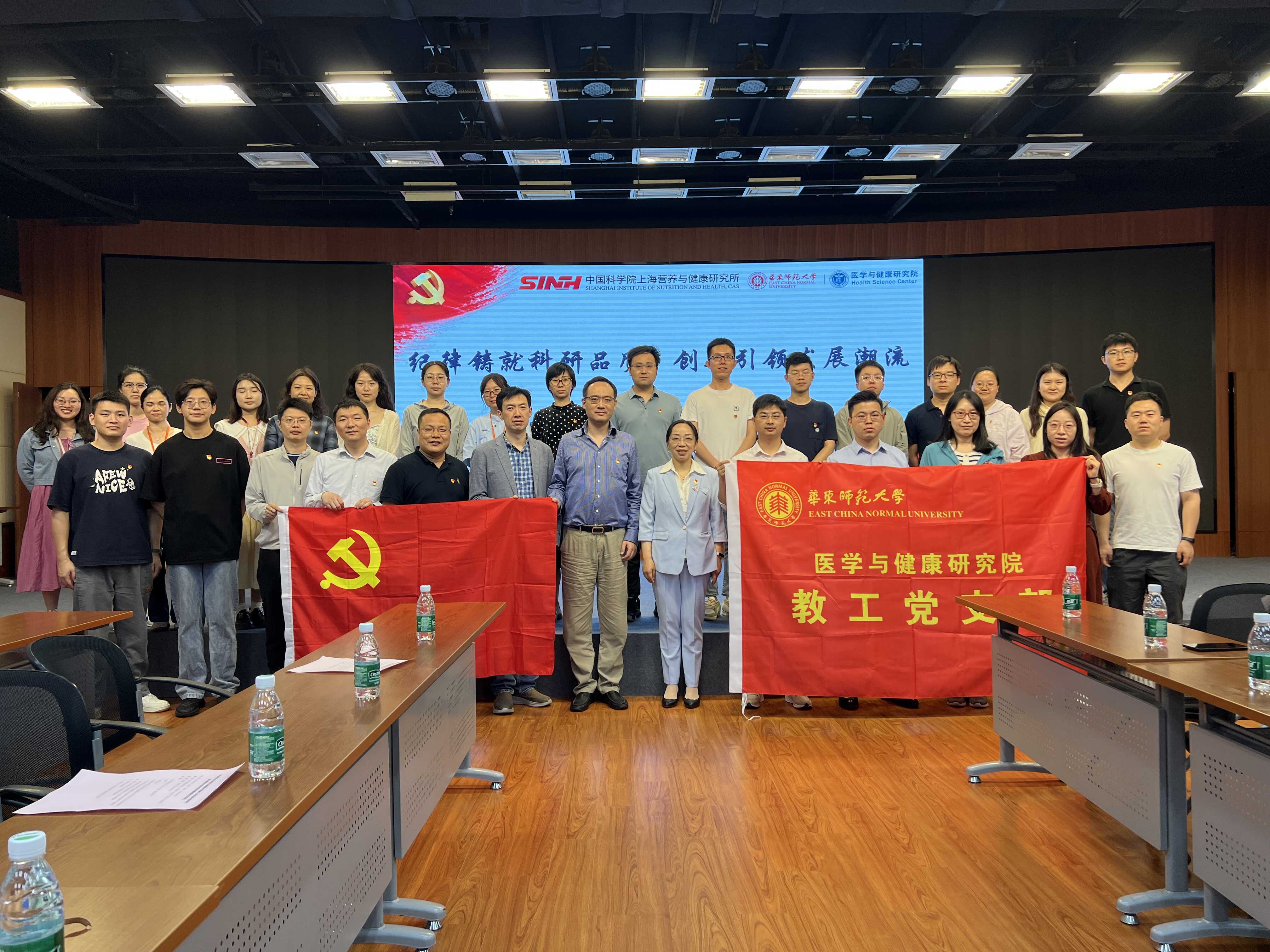 在科研交流座談中,雙方支部代表分別介紹了各自的基本情況與支部建設進展。徐敏華詳細介紹了華東師范大學的發展歷程、學科建設、醫學與健康研究院總體情況與發展目標;應浩對營養與健康所概況及科技制高點的行動目標與規劃作了全面闡述。此外,華東師范大學藥學院副教授朱書雷也分享了藥學院在科學研究與人才培養方面的基本情況。