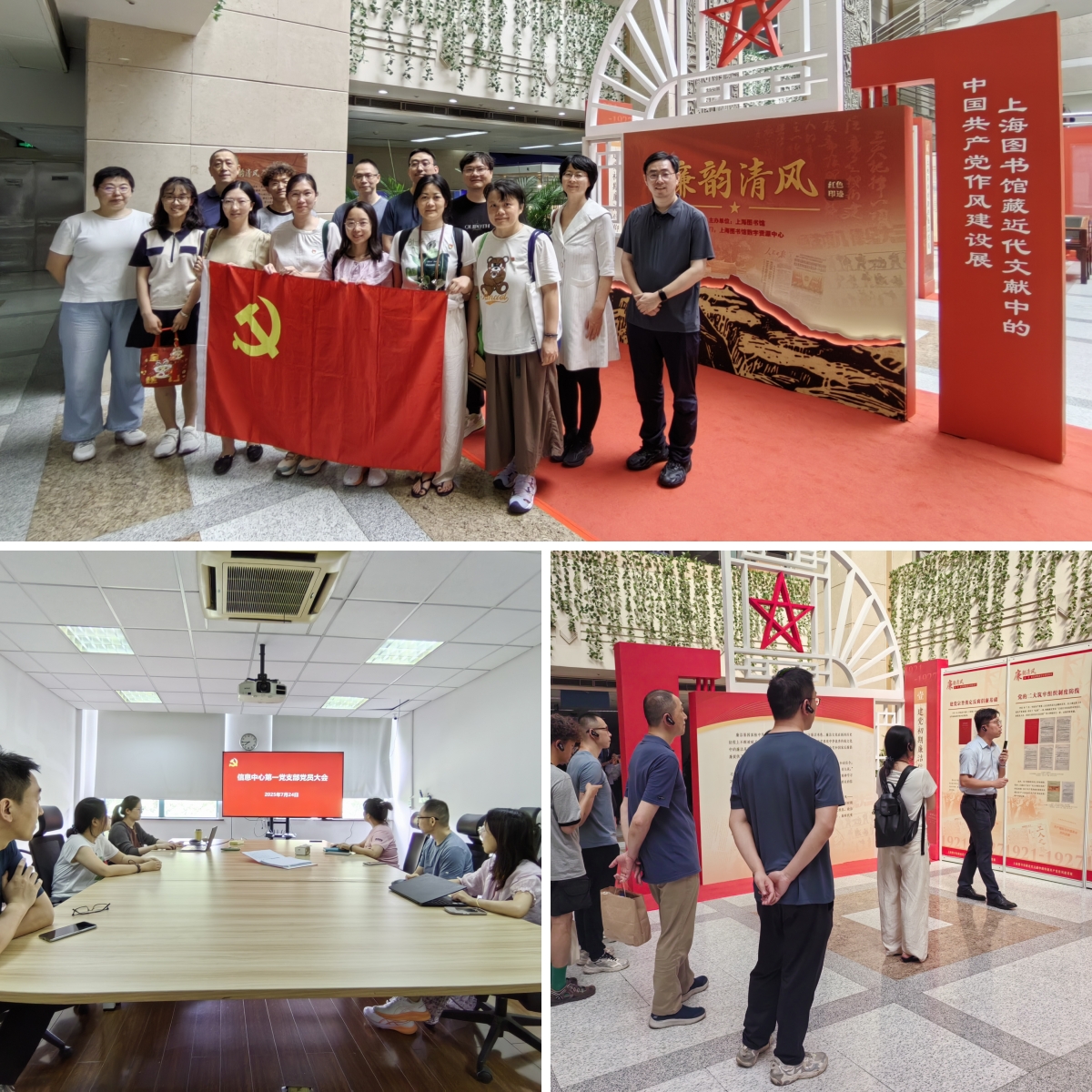 隨后,信息中心第一黨支部與信息中心第二黨支部共同前往上海圖書館,參觀“廉韻清風(fēng)——上海圖書館藏近代文獻(xiàn)中的中國共產(chǎn)黨作風(fēng)建設(shè)展”。黨員們依次深入了解“建黨初期廉潔信仰的奠基”、“土地革命時(shí)期的廉潔實(shí)踐”、“抗日戰(zhàn)爭時(shí)期的廉政探索”、“解放戰(zhàn)爭時(shí)期的廉潔治理”、“讓廉潔文化蔚然成風(fēng)”五大專題展區(qū),并從監(jiān)督機(jī)制、制度演進(jìn)、黨員修養(yǎng)、軍隊(duì)紀(jì)律、群眾路線五個(gè)維度,系統(tǒng)學(xué)習(xí)中國共產(chǎn)黨對廉潔文化的傳承與革新。