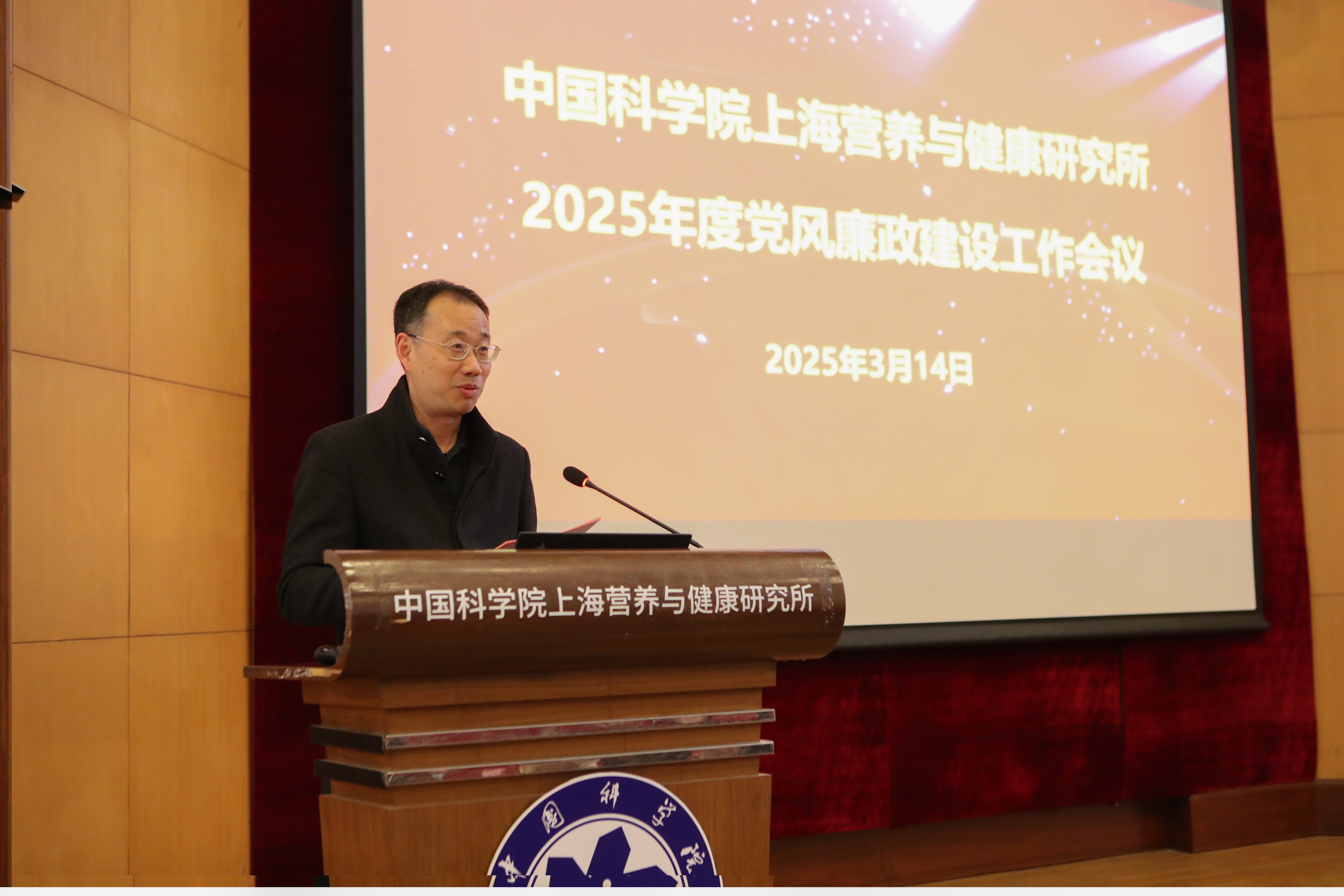 3月14日下午,中國科學院上海營養與健康研究所召開2025年度黨風廉政建設大會。研究所領導班子成員、黨委委員、所務委員、紀委委員、各基層黨組織及群團組織負責人、職工代表,副高及以上專業技術人員、職能部門人員等120余人參加會議。會議由紀委書記曹永主持。