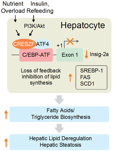 臟中CREBZF對Insig的轉錄調控模型:治療肝臟脂代謝紊亂與脂質沉積的潛在作用方式