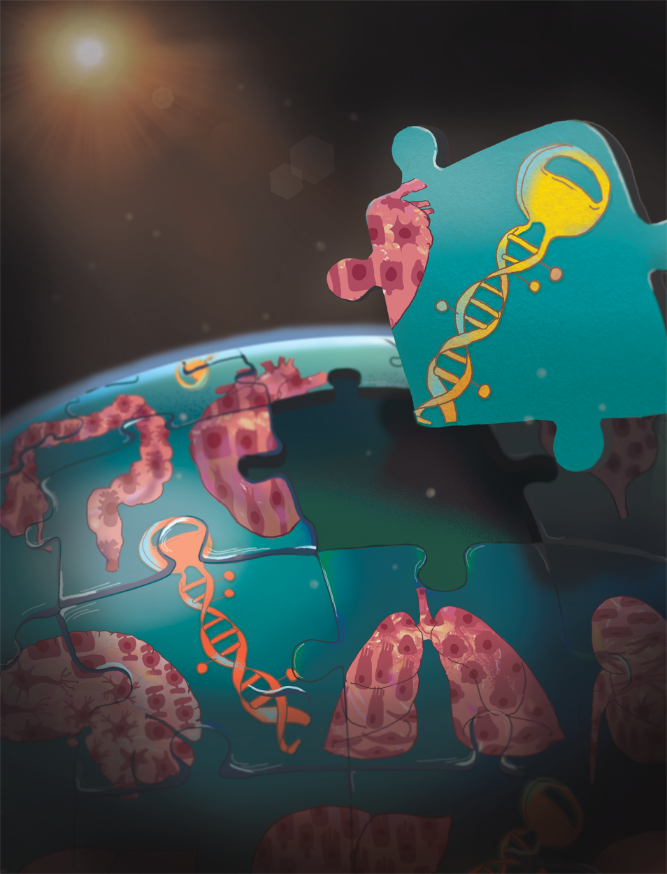 圖注:這是一個漂浮著各種組織和器官的星球,器官上有不同的細(xì)胞類型。DNA甲基化是最后一塊拼圖,它就像一枚鑰匙,可以打開關(guān)于疾病的未解之謎。