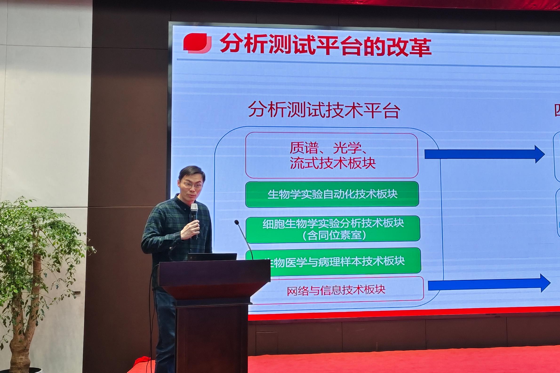 營(yíng)養(yǎng)與健康所副所長(zhǎng)胡國(guó)宏作《漕寶路園區(qū)科研空間及所級(jí)中心平臺(tái)規(guī)劃與布局總體思考》報(bào)告,介紹了新科研大樓總體情況和科研空間規(guī)劃布局;以現(xiàn)狀為出發(fā)點(diǎn),著眼研究所長(zhǎng)遠(yuǎn)發(fā)展,從架構(gòu)、人才、崗位體系、經(jīng)費(fèi)等多方面勾勒了所級(jí)中心重組重塑藍(lán)圖。相關(guān)平臺(tái)負(fù)責(zé)人也分別就流式、質(zhì)譜、成像、實(shí)驗(yàn)動(dòng)物技術(shù)、通用技術(shù)等所級(jí)中心平臺(tái)和所級(jí)科學(xué)數(shù)據(jù)中心規(guī)劃與布局進(jìn)行了匯報(bào)。