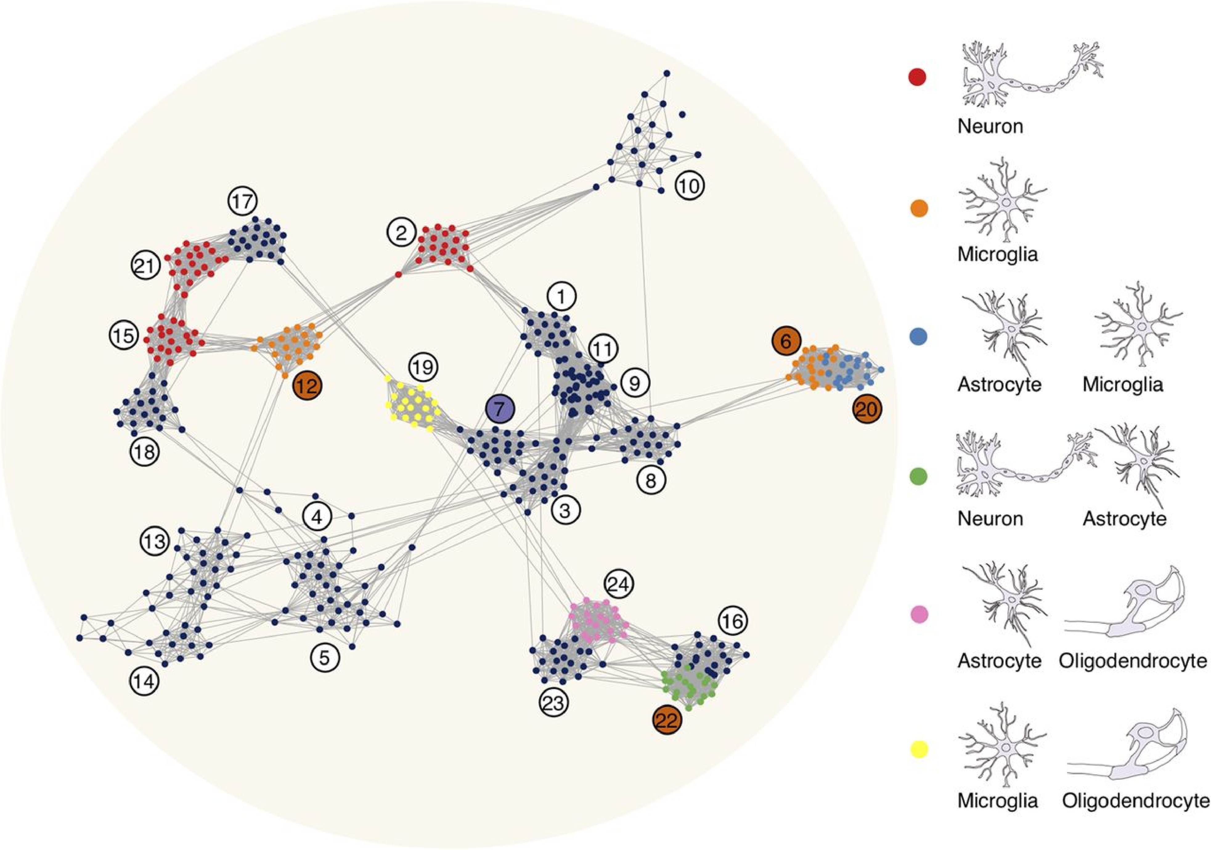在共表達網(wǎng)絡(luò)中的24個模塊的可視化視圖