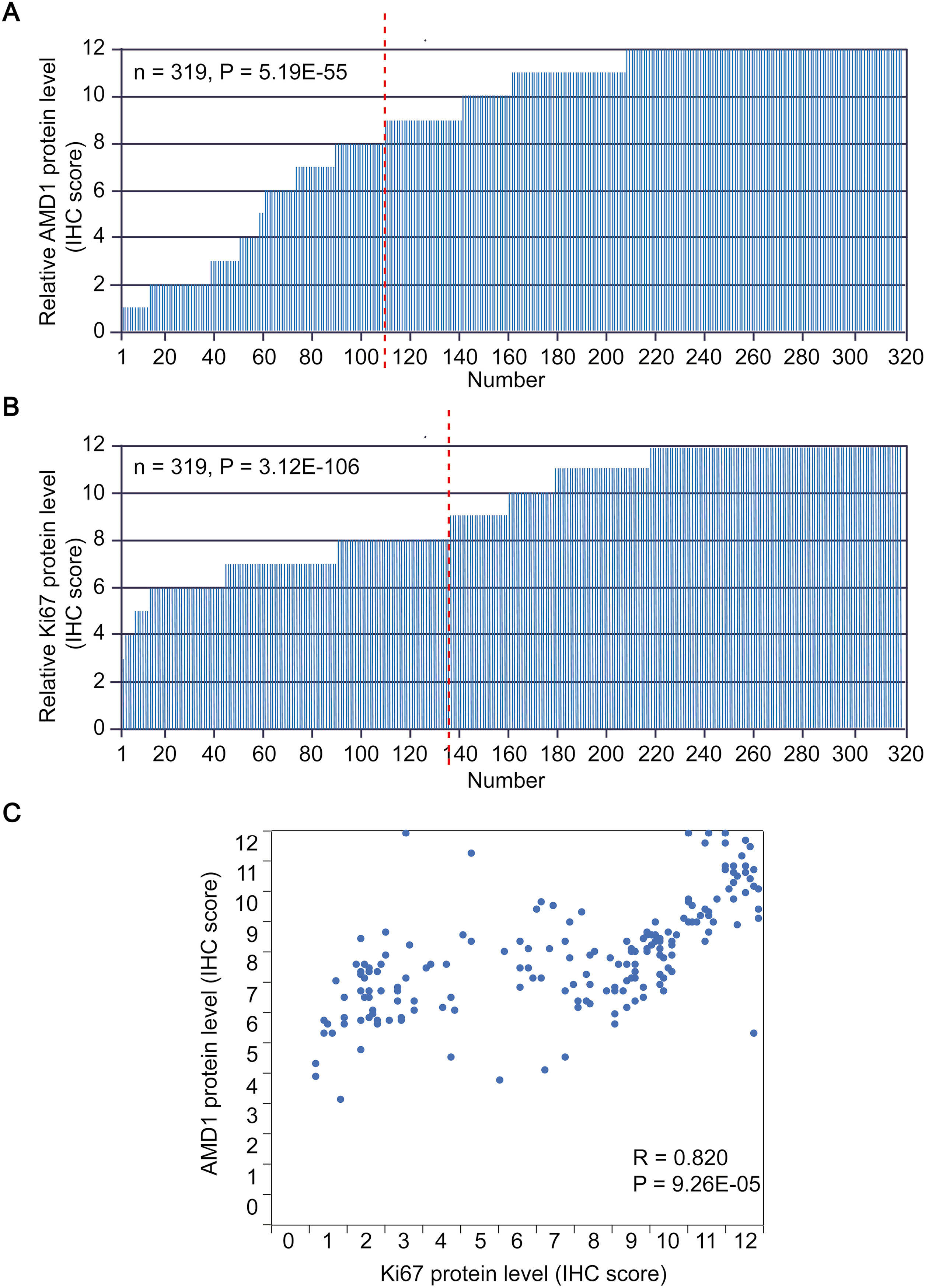 圖示:AMD1表達在原發性胃癌中的上調及其與Ki67的相關性