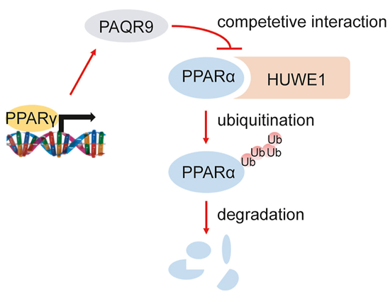 圖:PAQR9競爭性結(jié)合HUWE1以保護PPARα蛋白穩(wěn)定性