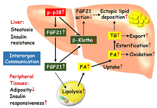 圖:肝臟p38通過調控FGF21影響機體代謝