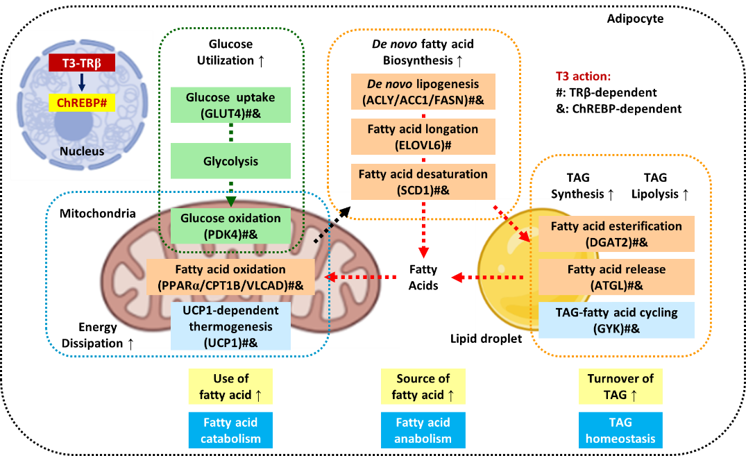 圖注:脂肪細胞甲狀腺激素信號通路對胞內代謝途徑的調控