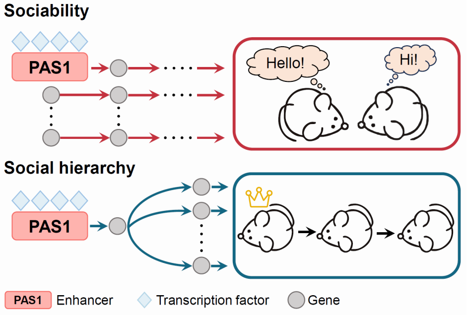 圖:PAS1增強子對社交能力與社會分化的遺傳調(diào)控機制示意圖