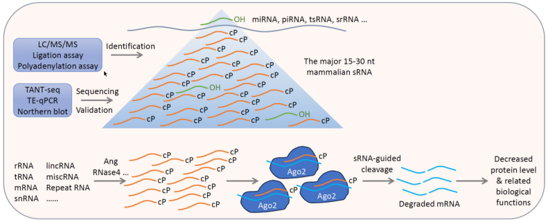 哺乳動(dòng)物15-30nt長(zhǎng)度的小RNA主要為sRNA-cP,但這些小RNA究竟是在分離純化RNA過(guò)程中隨機(jī)降解產(chǎn)生的,還是在細(xì)胞內(nèi)特異性加工產(chǎn)生的還有待解答。通過(guò)對(duì)sRNA-cP的末端序列特征分析發(fā)現(xiàn),其3’末端主要為嘧啶堿基,而5’末端主要為嘌呤堿基。根據(jù)已知的細(xì)胞內(nèi)各種RNA內(nèi)切酶的序列識(shí)別特征,通過(guò)逐步的體外篩選以及后續(xù)的基因敲除和過(guò)表達(dá)等技術(shù)發(fā)現(xiàn),ANG和RNase4介導(dǎo)了部分sRNA-cP的產(chǎn)生。