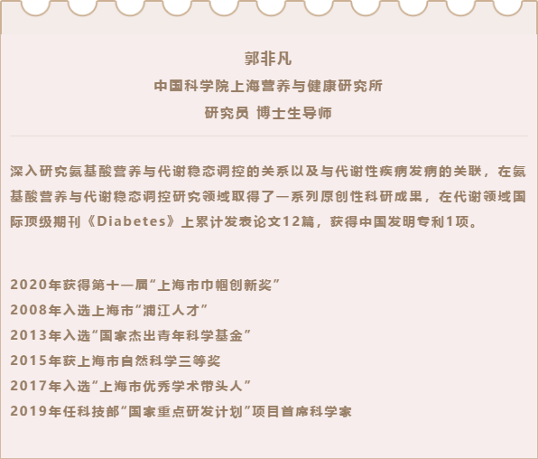 正是因為郭非凡對科研的熱忱與專注,回國不久,她深入研究氨基酸營養與代謝穩態調控的關系以及與代謝性疾病發病的關聯,在氨基酸營養與代謝穩態調控研究領域取得了一系列原創性科研成果,該研究對我國日益增長的營養相關代謝性疾病的預防、控制和治療具有重大意義。