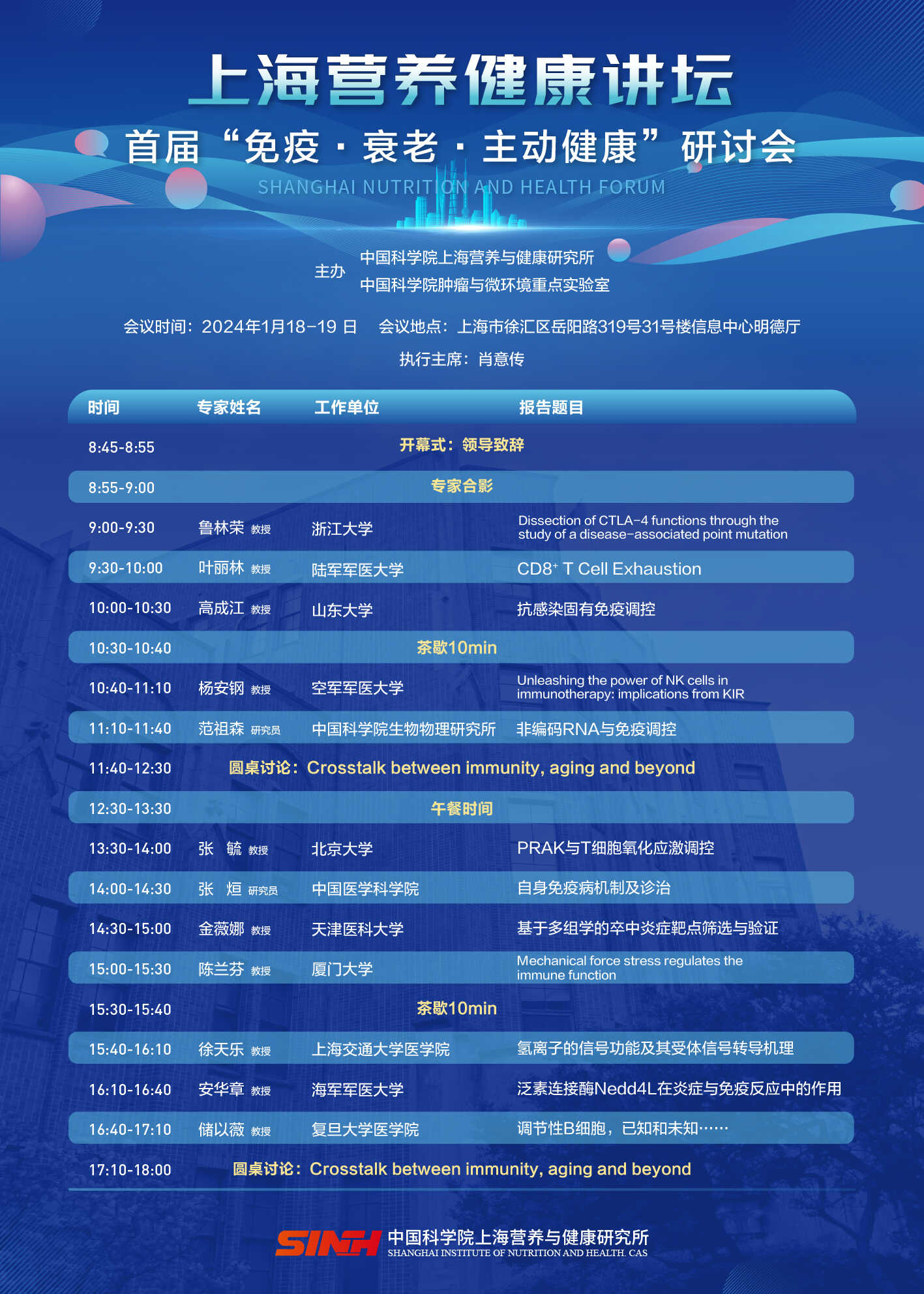 上海營養健康講壇首屆“免疫·衰老·主動健康”研討會丨上海營養健康講壇第一百一十一期學術報告