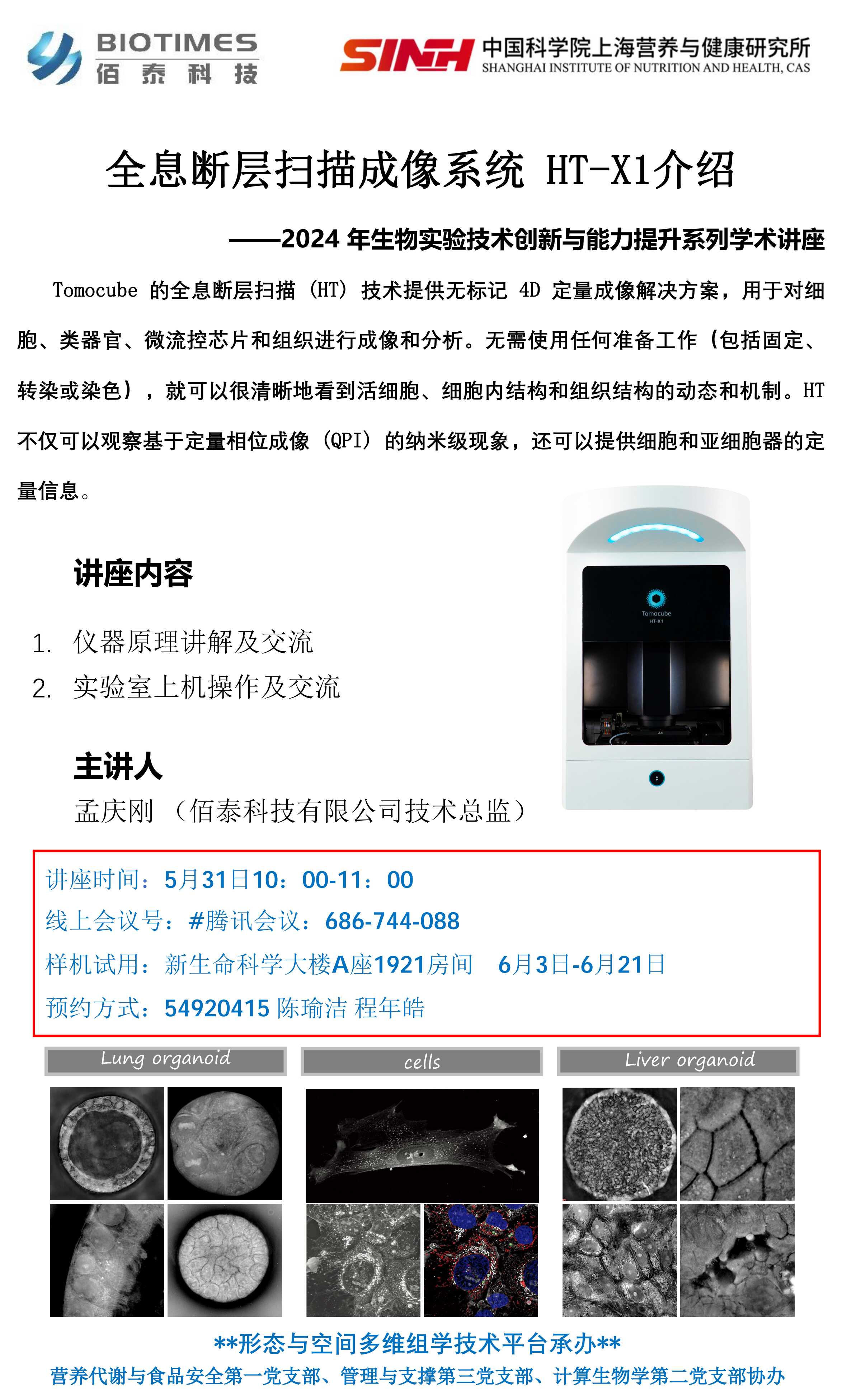 形態與空間多維組學技術平臺丨全息斷層掃描成像系統HT-X1介紹——2024年生物實驗技術創新與能力提升系列學術講座