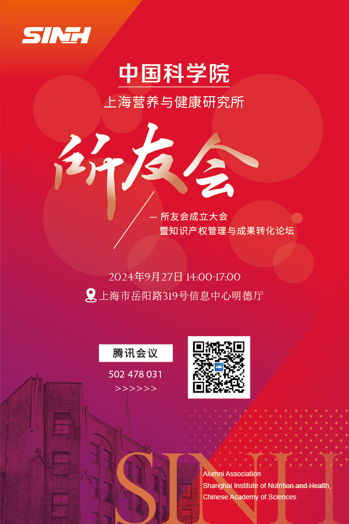 邀您線下/線上參會!中國科學院上海營養與健康研究所所友會成立大會暨知識產權管理與成果轉化論壇