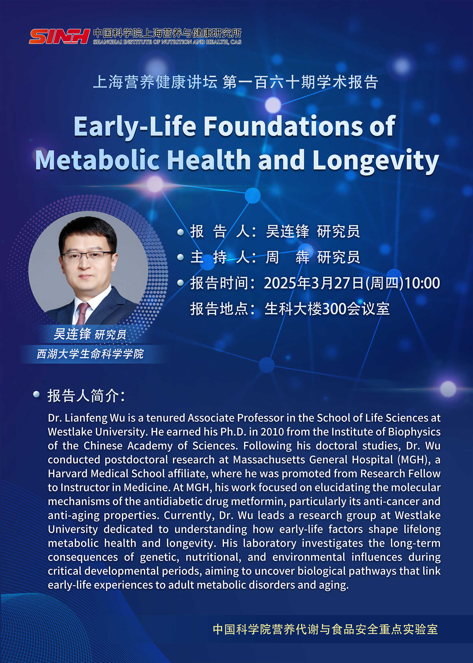 3月27日|Early-Life Foundations of Metabolic Health and Longevity-上海營養(yǎng)健康講壇