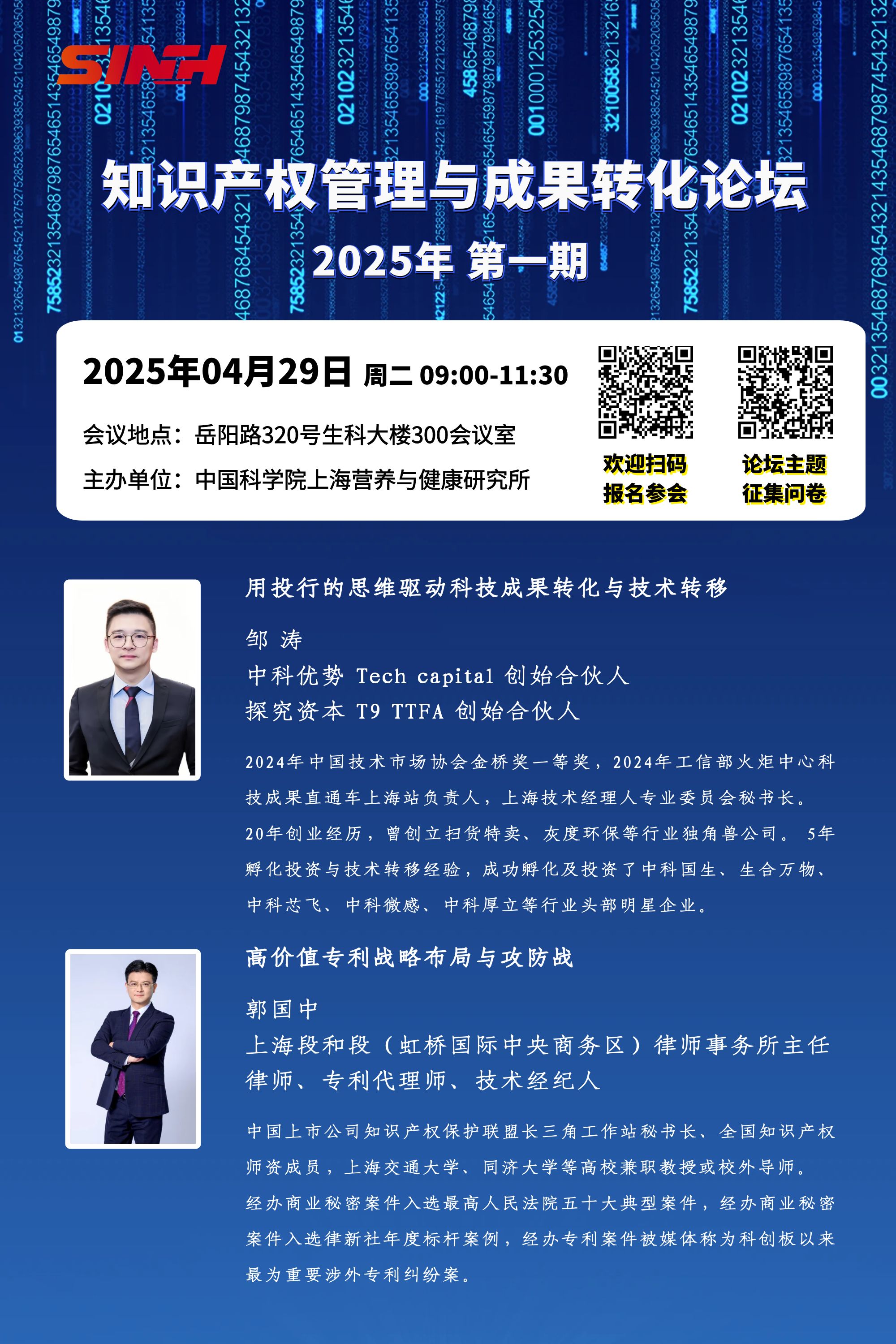 4月29日|知識產權管理與成果轉化論壇-2025年第一期