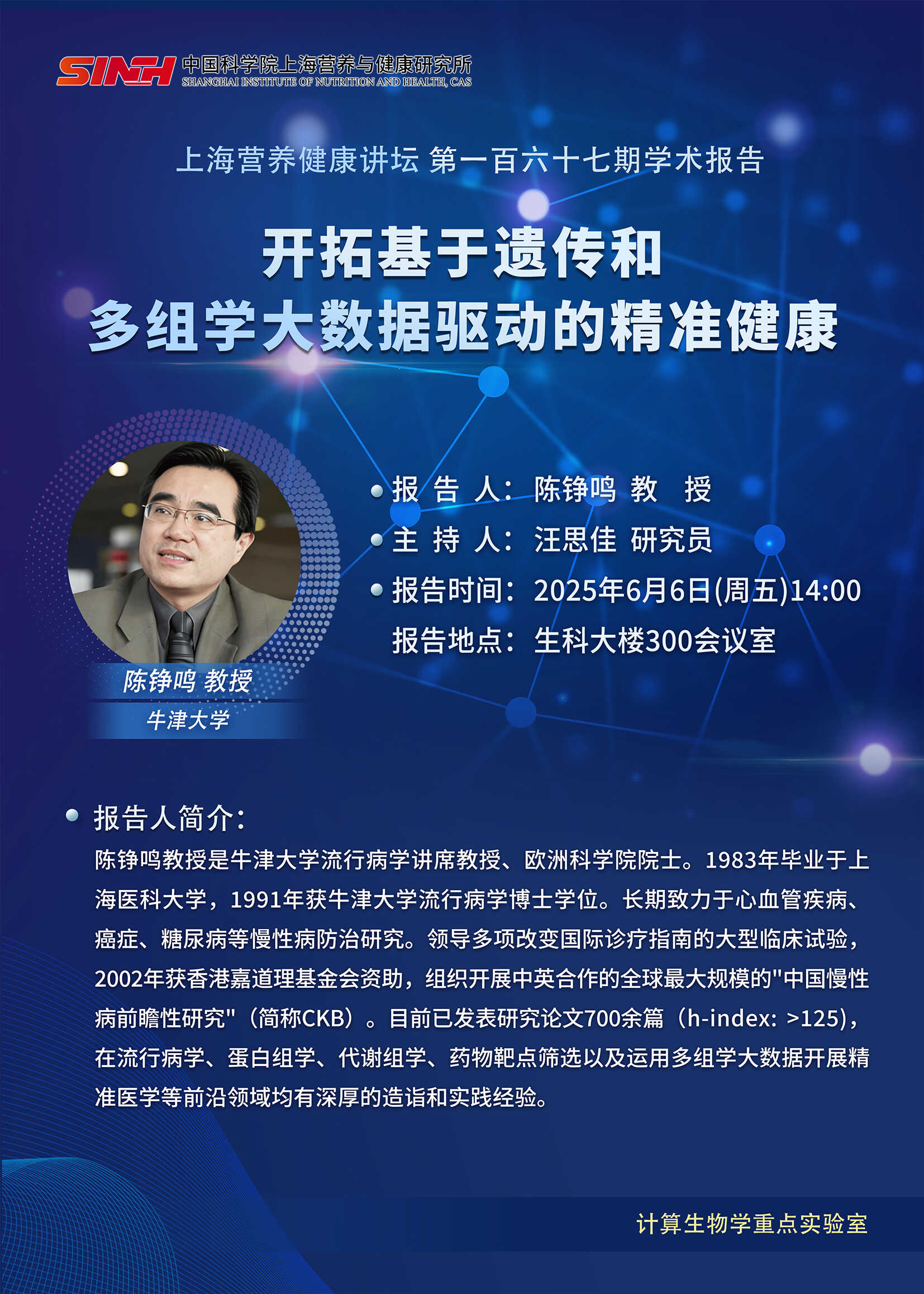 6月6日|開拓基于遺傳和多組學大數據驅動的精準健康-上海營養健康講壇