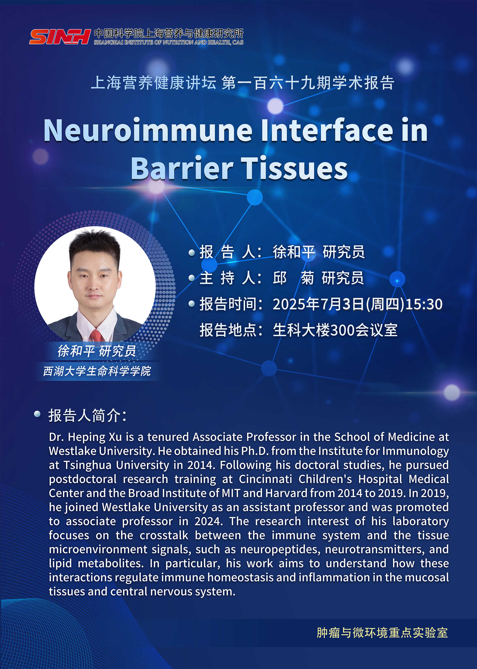 7月3日|Neuroimmune Interface in Barrier Tissues-上海營養健康講壇