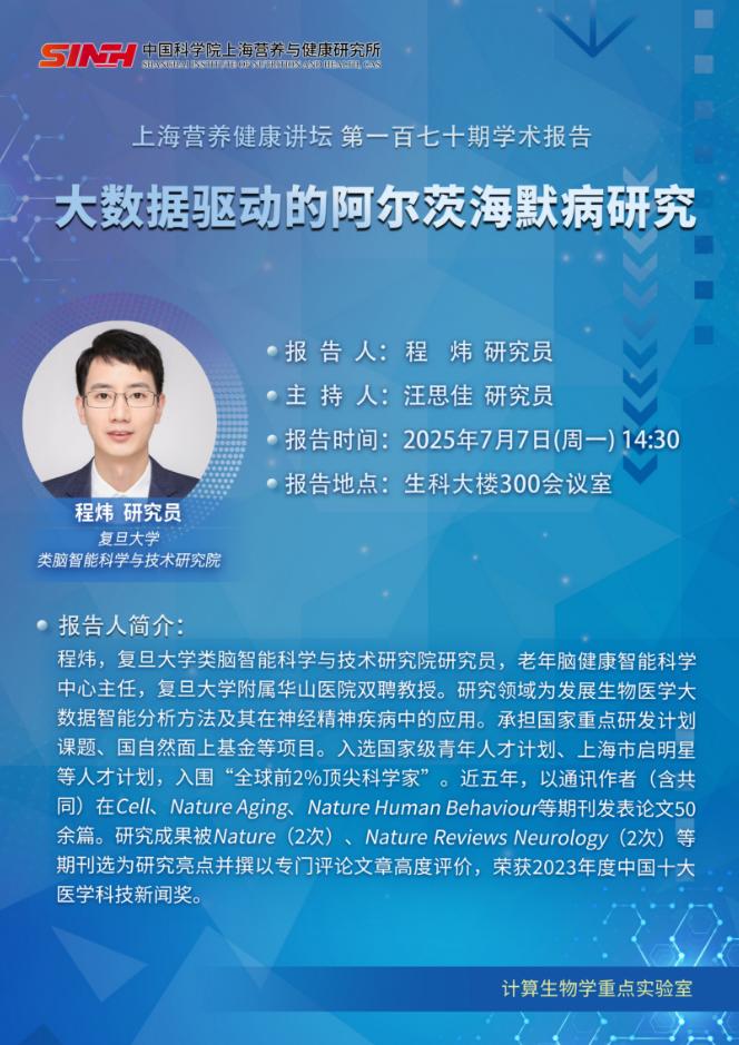 7月7日|大數據驅動的阿爾茨海默病研究—上海營養健康講壇