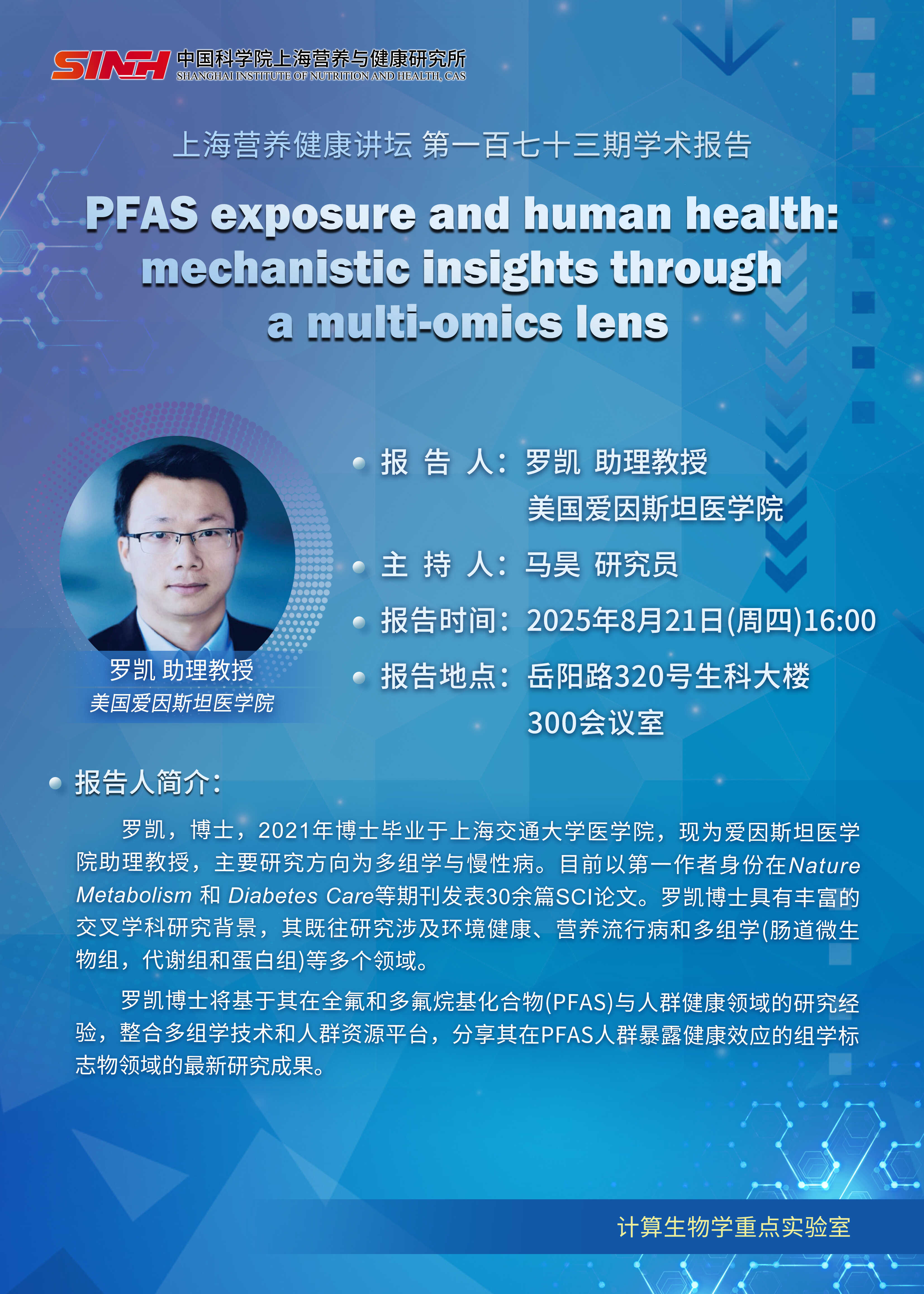 8月21日|PFAS exposure and human health-mechanistic insights through a multi-omics lens-上海營養健康講壇