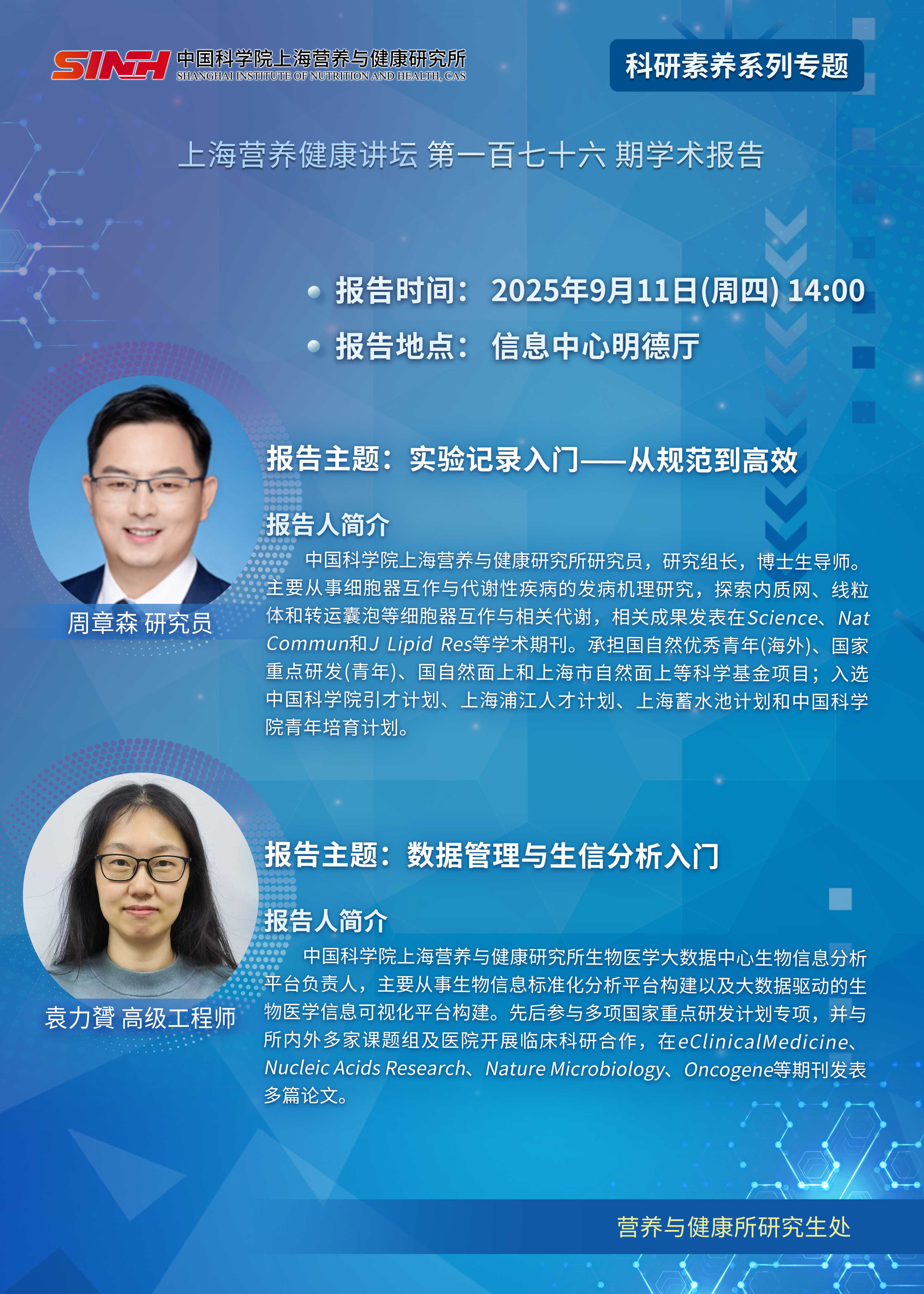 9月11日|實驗記錄入門——從規范到高效;數據管理與生信分析入門-上海營養健康講壇