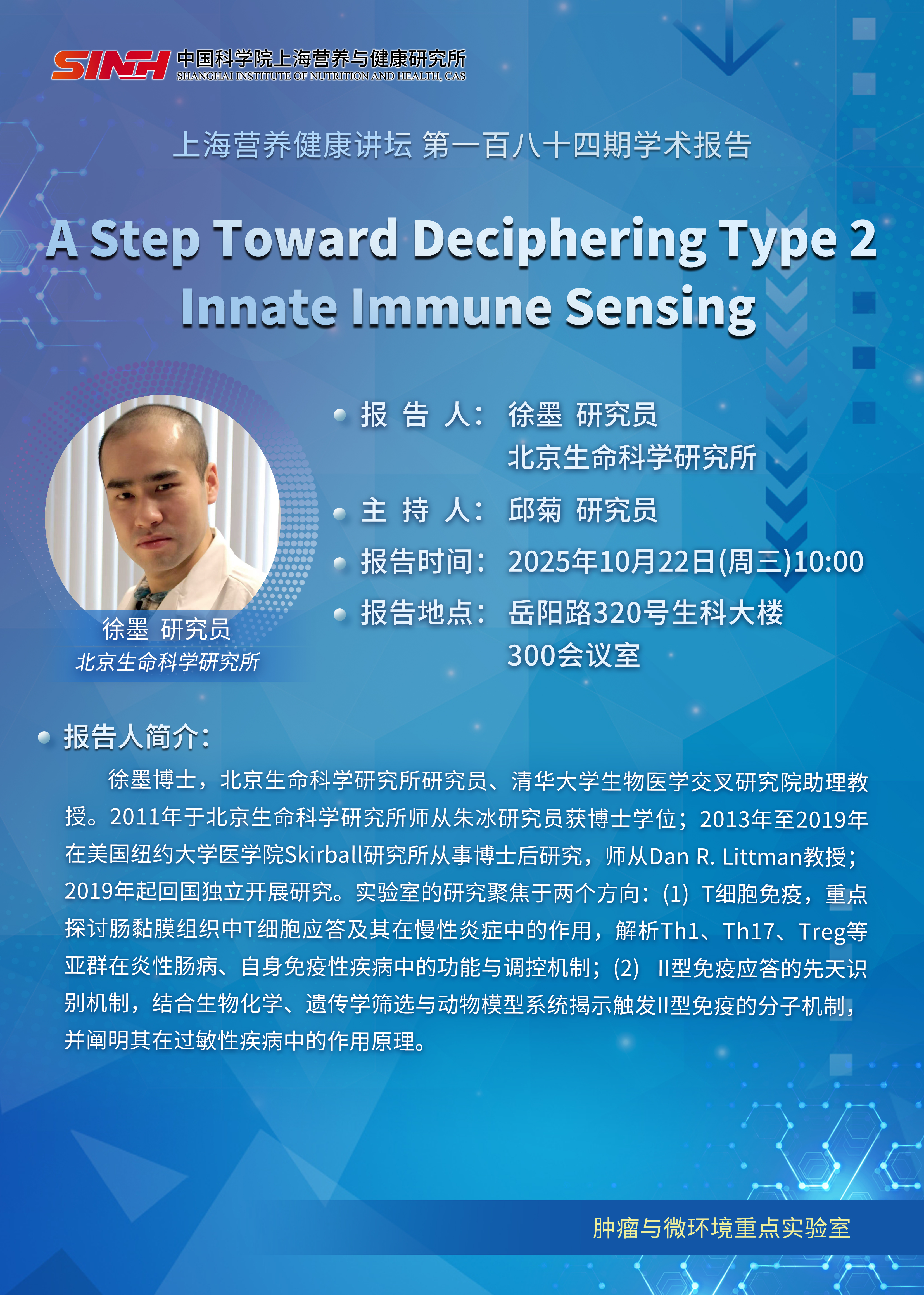 10月22日|A Step Toward Deciphering Type 2 Innate Immune Sensing-上海營(yíng)養(yǎng)健康講壇
