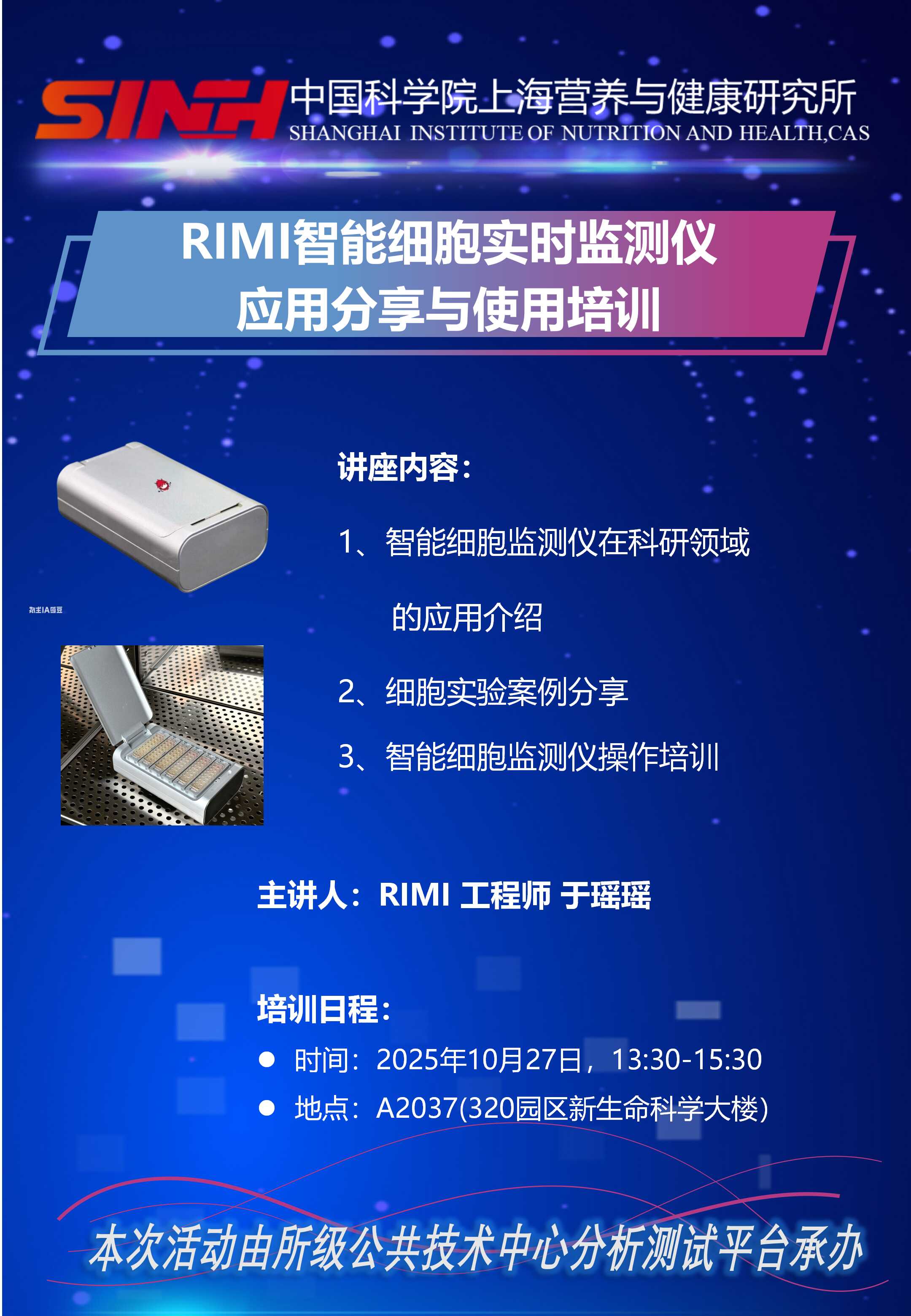 10月27日|RIMI智能細胞實時監測儀應用分享與使用培訓