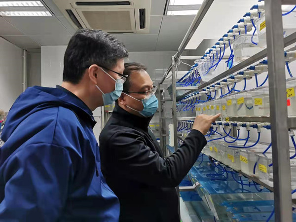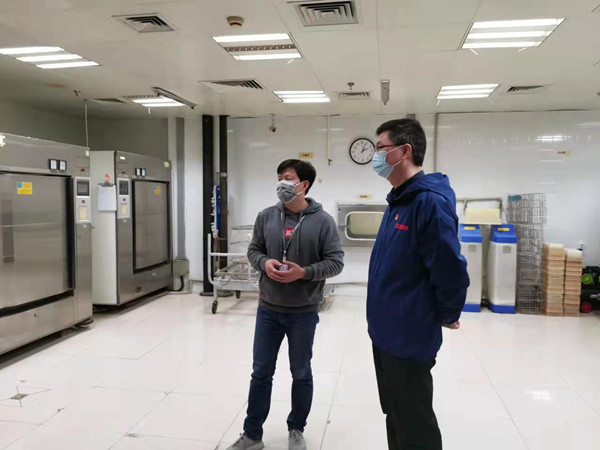 黨委書記、副所長、應急專項工作組組長瞿榮輝帶隊來到所級公共技術中心、信號轉導與疾病研究組等,代表研究所黨委向奮戰在疫情防控一線的黨員干部、師生員工、后勤保障人員以及服務在各個崗位上的志愿者表示感謝,對各研究單元、管理與支撐部門眾志成城、共同戰疫取得的成效給予肯定。瞿榮輝檢查了分析測試技術平臺工作,并與現場負責同志以及科研人員進行了交流,他要求全所上下要堅持“減少流動”的工作主基調,對于確實無法中斷的實驗,務必在抓好防疫的前提下穩步有序開展。瞿榮輝詳細了解了實驗動物設施運行情況,細致關心平臺工作人員生活保障需求,對實驗動物技術平臺早抓防疫、全面開展全員24小時在崗值守確保設施運行穩定表示了高度肯定。在信號轉導與疾病研究組實驗室,瞿榮輝認真聽取了研究所“揭榜掛帥”首席科學家潘巍峻研究員有關工作進展情況報告,對研究所各條線克服疫情困難所取得的工作積極進展表示贊賞。隨后,瞿榮輝還細致檢查了新生命大樓各要害部位的安全、消毒等工作開展情況,實地查看了采購部物資儲備和實驗材料采購情況,叮囑隨行職能部門負責人充分做好后勤服務保障,確保將疫情對研究所重點科技攻關任務的影響降到最低。