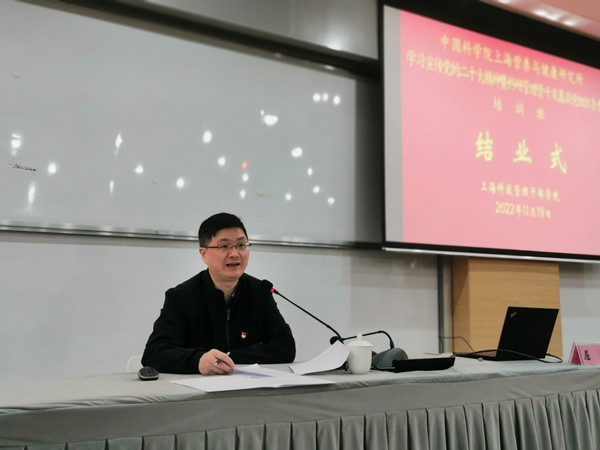 黨委書記瞿榮輝在結業式上作總結講話。他指出,全所各級黨員干部要把學習宣傳貫徹二十大精神當成首要政治任務,提高政治站位,以習近平總書記“五個牢牢把握”和侯建國院長的“八個深刻把握”學習要求為指引,學懂弄通狠抓落實;要堅持樹牢全所一盤棋思想,不斷提高政治判斷力、政治領悟力、政治執行力,加強聯動協同,梳理解決難點堵點問題,以“抓鐵留痕踏石留印”的實干精神,努力為研究所改革發展貢獻力量;要緊緊圍繞院黨組“強基礎、抓攻關、聚人才、促改革”部署要求,進一步加強黨建與業務深度融合,實現高水平黨建與高質量發展同頻共振,推動院黨組重大決策部署和研究所重點任務盡早落地落實。
