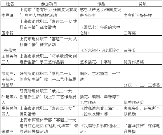 為喜迎黨的二十大勝利召開,頌揚新時代的輝煌變化,研究所于8月至10月期間組織了退休職工“喜迎二十大”系列活動,老同志們熱情響應,將愛黨愛國的政治熱情轉化為創作動力,用妙筆、用巧手、用鏡頭向二十大獻禮50余件原創作品。