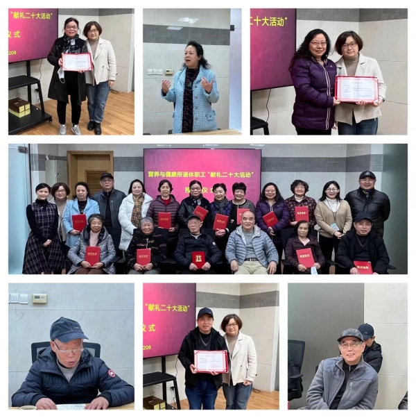 12月8日,營養與健康所舉辦退休職工“喜迎二十大系列活動”授獎儀式,獲獎退休職工、退休支部書記等20多人參加了儀式。