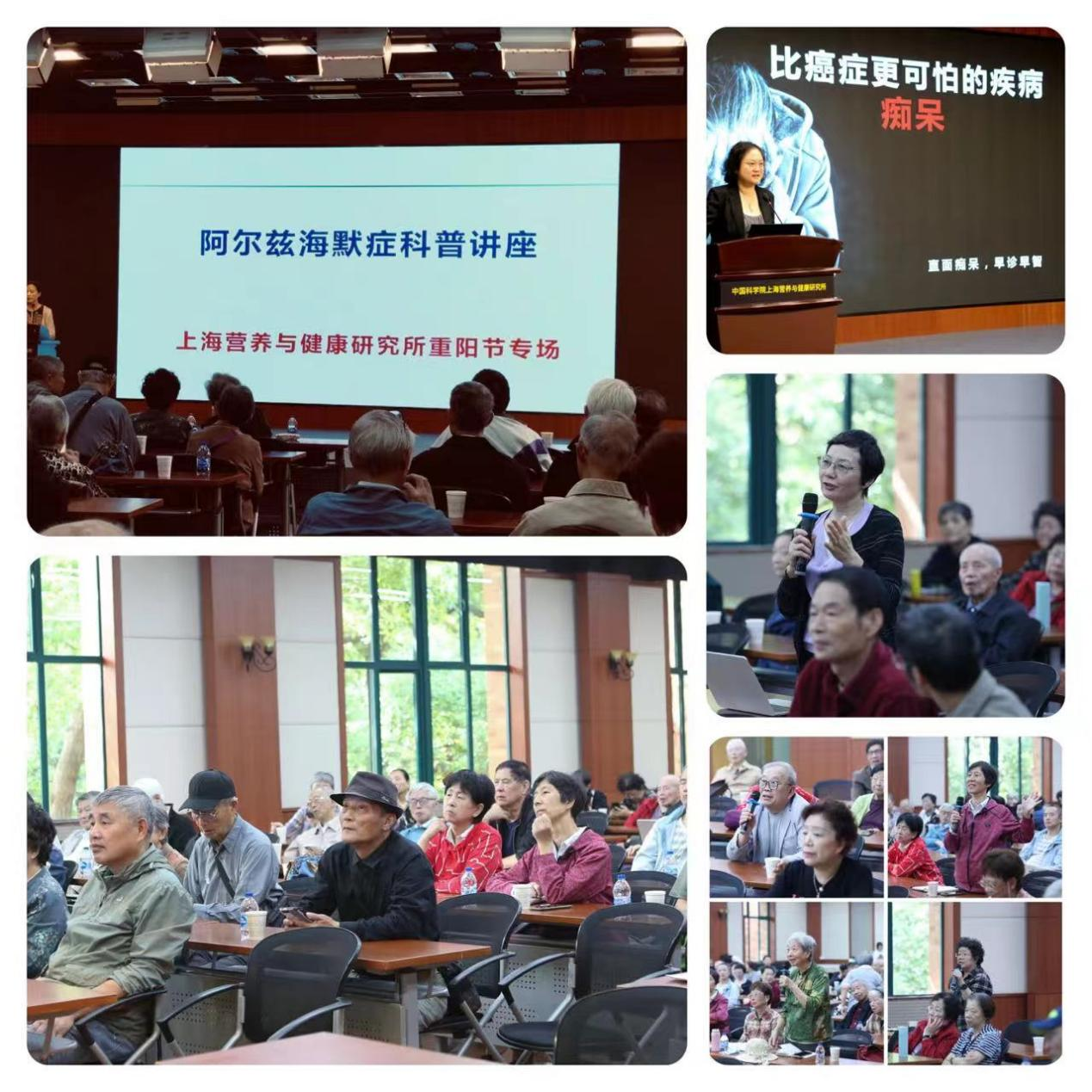 同日,營養與健康所重陽節活動之阿爾茲海默癥科普講座在明德廳舉行。特邀專家瑞金醫院神經內科副主任醫師徐瑋憑借其深厚的專業知識和豐富的臨床經驗,針對阿爾茲海默癥的表現與危害、診斷與治療,以及對患者的照護等多個方面進行深度解析,幫助老同志系統了解了阿爾茲海默癥。徐瑋強調了早診斷、早干預的重要性,鼓勵大家積極采取健康的生活方式以降低患病風險,并針對老同志的相關困惑和疑問做了耐心細致的解答。此次講座吸引了近80位老同志參與。