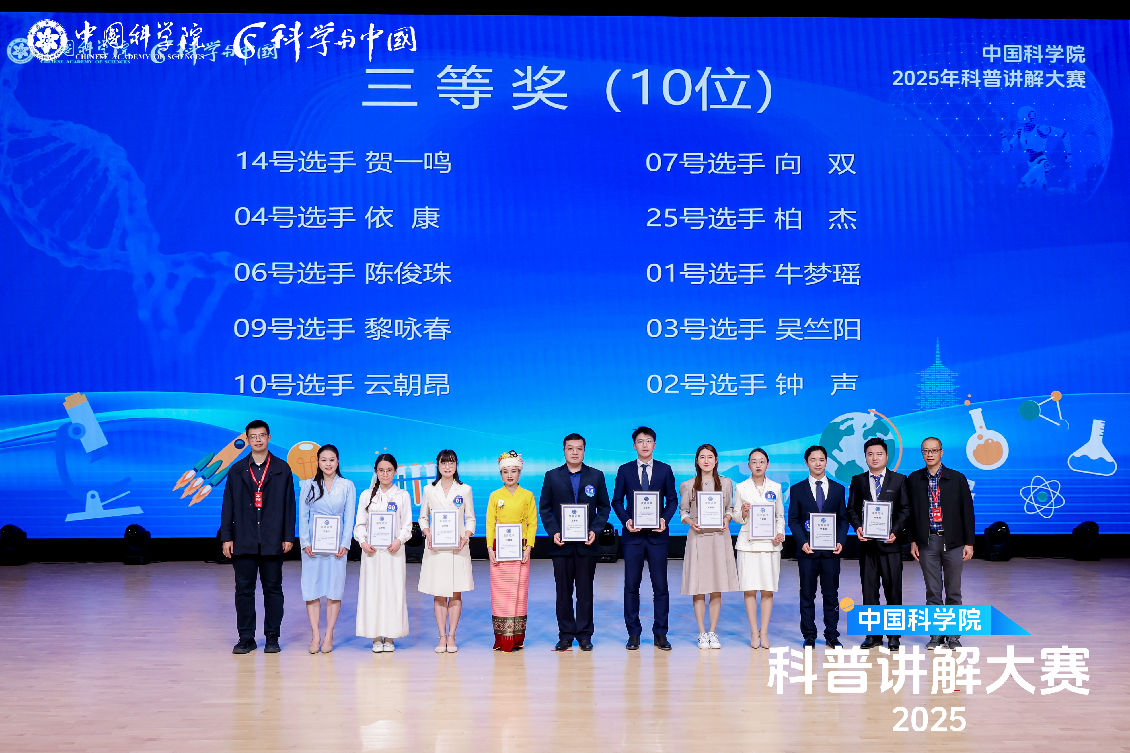 中國科學院上海營養與健康研究所經過前期面向所內廣泛征集、精心組織籌備培訓,選拔出黃鈺琦(馬昊研究組研究生)、吳竺陽(章海兵研究組研究生)、李學良(李虹研究組研究生)三位選手代表參賽。選手們化身前沿基礎與應用基礎研究的“翻譯官”,讓“高大上”的科學知識“接地氣”,從半決賽與總決賽的激烈角逐中脫穎而出。其中,黃鈺琦榮獲大賽二等獎,吳竺陽榮獲三等獎,李學良榮獲優秀獎。營養與健康所同時獲評優秀組織獎。